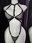 Tiene dos triángulos pequeños en el busto, un triángulo minimalista al frente y en la parte trasera un diseño tipo rutero abierto, con abertura en la cola para fácil acceso.